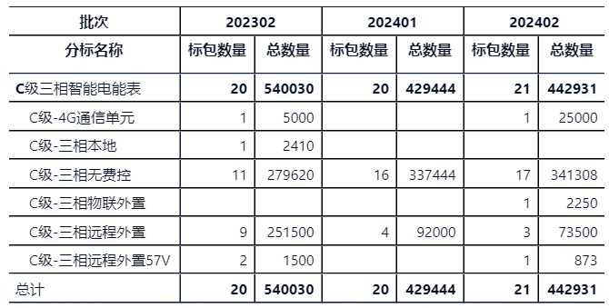 C級三相表預計至少有20家企業中標,最多有1家企業能中2包;