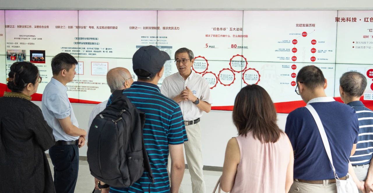 專家考察團(tuán)一行參觀了聚光科技綠色科技展廳,陳熒平首先簡(jiǎn)要介紹了聚光科技黨建的發(fā)展歷程、“紅色傳感”黨建品牌,以及雙領(lǐng)制、雙積分制、與業(yè)務(wù)深度結(jié)合的特色做法。