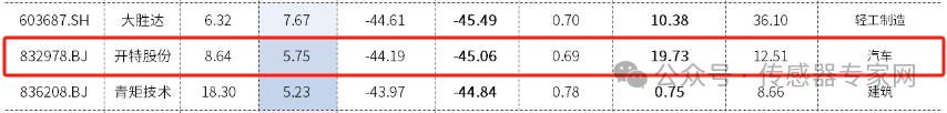 細分來看,國產汽車傳感器企業開特股份收盤報漲10.07%,領銜中國A股傳感器股票,市值17.05億元。