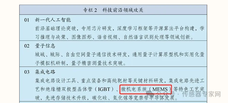 2021年3月,“十四五”規劃發布,將智能傳感器重要制造技術——MEMS(微機電系統)工藝,寫入【科技前沿領域攻關】技術項目中。