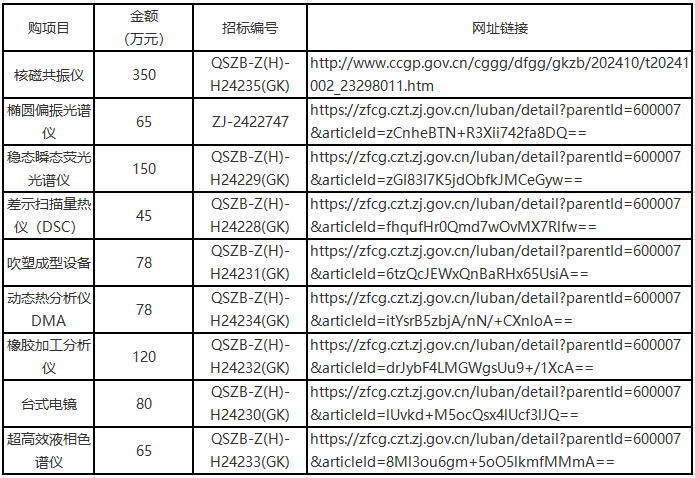 近期,浙江求是招標(biāo)代理有限公司關(guān)于浙江理工大學(xué)一批設(shè)備發(fā)布公開招標(biāo)公告,本網(wǎng)匯總這批采購項(xiàng)目,該套招標(biāo)總價(jià)超1000萬,涵蓋核磁、光譜、超高效液相色譜、電鏡、量熱儀DSC、動(dòng)態(tài)熱分析儀DMA等設(shè)備。詳見下表: