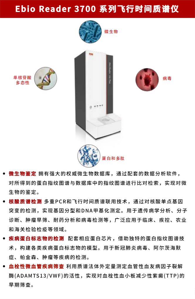 該款產(chǎn)品是東西分析經(jīng)過(guò)多年潛心研發(fā),可在同一儀器平臺(tái)上實(shí)現(xiàn)微生物鑒定、核酸基因分型、疾病蛋白標(biāo)志物鑒定、微血管疾病篩查等。此技術(shù)在國(guó)內(nèi)居于領(lǐng)先地位,設(shè)備在天津市屬于首臺(tái)套重大技術(shù)裝備。曾榮獲“2022年度天津市創(chuàng)新創(chuàng)業(yè)大賽二等獎(jiǎng)”。