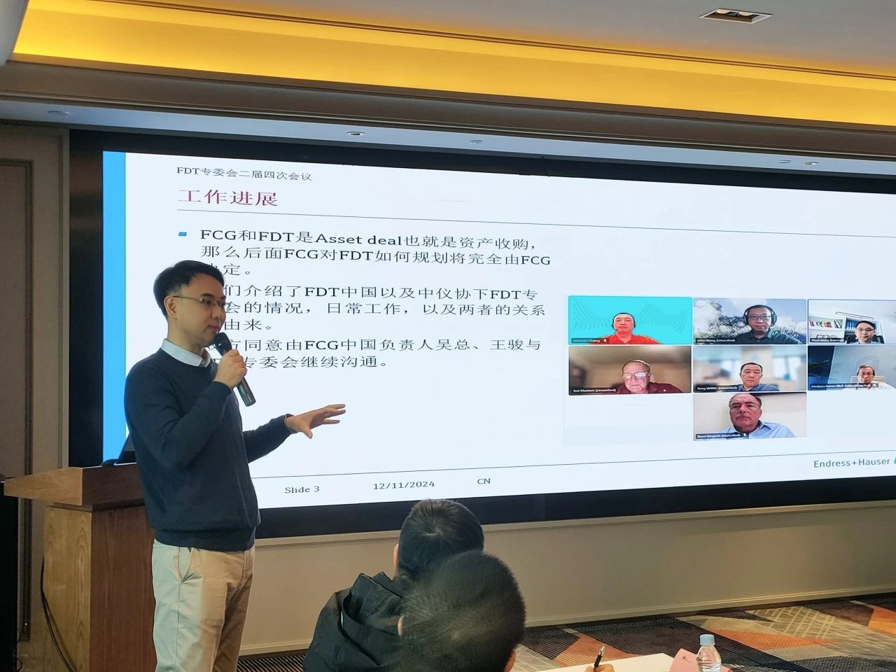 會議于上午9點準時開始,中國FDT專委會常務副主任委員,來自恩德斯豪斯的王奕瑋先生向參加本次會議的全體代表致歡迎詞,向大家介紹了FDT專委會在今年下半年與國際FCG組織的溝通、合作進展,以及對專委會2025年各項重點工作的初步設想。隨后進行了本次會議的一項重要提案表決 -- 專委會委員單位及人員調整方案:增補章安冬為委員單位美名軟件代表;增補FCG為常委單位,王駿為代表。以上提案經(jīng)現(xiàn)場代表一致通過并立即生效。