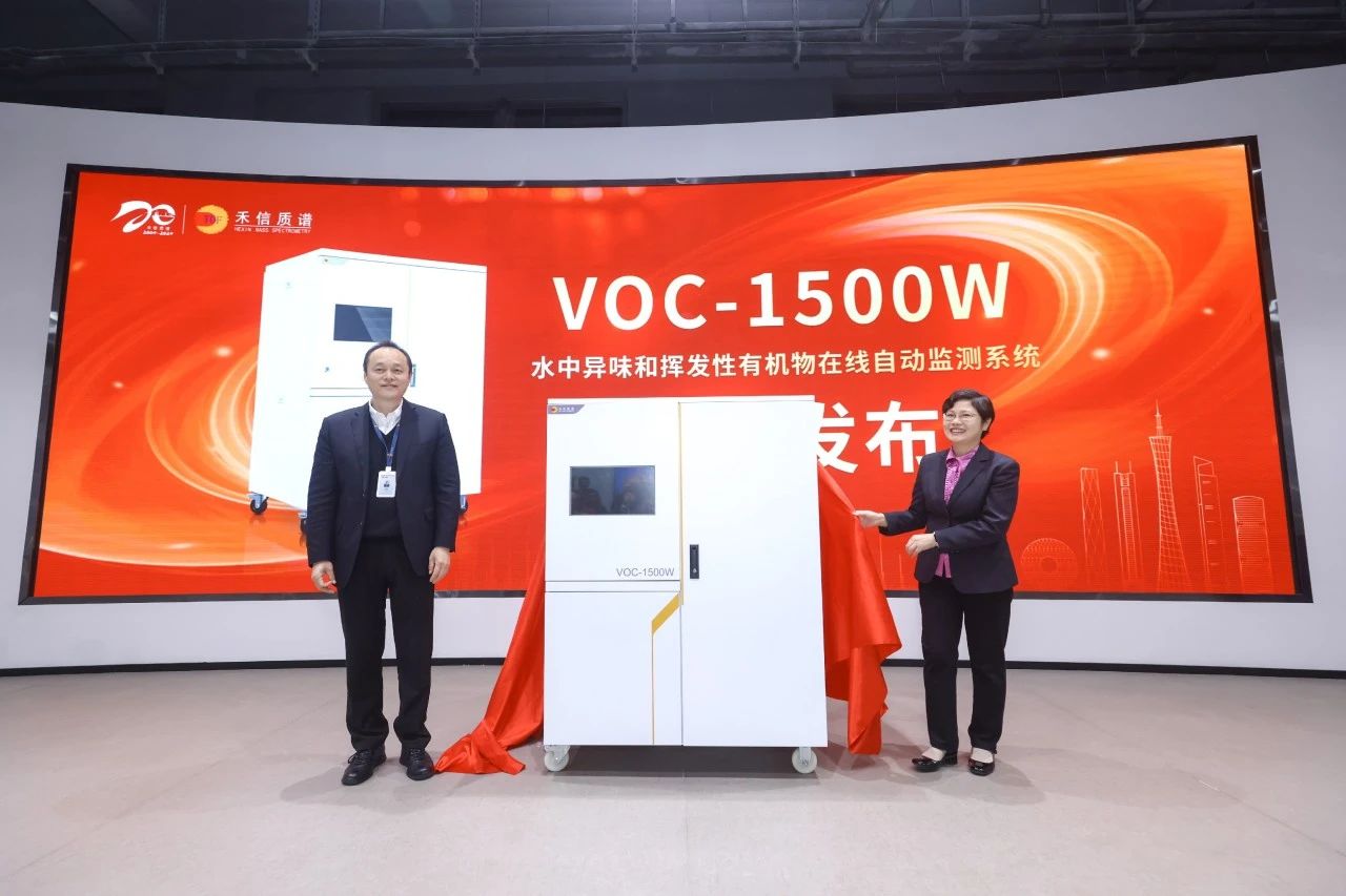 發(fā)布會(huì)上,廣東省城鎮(zhèn)供水協(xié)會(huì)專家委員會(huì)副主任董玉蓮、禾信儀器總經(jīng)理徐向東先生共同為VOC-1500W水中異味和揮發(fā)性有機(jī)物在線自動(dòng)監(jiān)測(cè)系統(tǒng)揭幕。