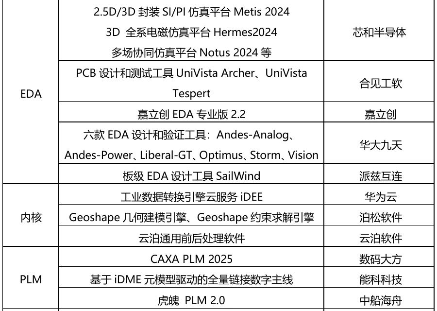 2024年,國內工業軟件廠商推出了若干款全新產品和年度版本,覆蓋CAD、CAE、EDA、MBSE、PLM、MBM、內核引擎、工具鏈平臺等多個產品領域,極大填補了研發設計工業軟件領域的空白,為國產工業軟件的國產替代夯實了基礎。