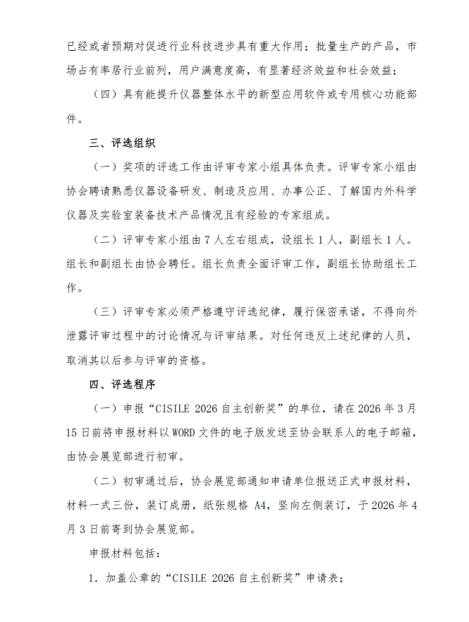 點擊“申請表”下載CISILE 2026 自主創(chuàng)新獎申請表
