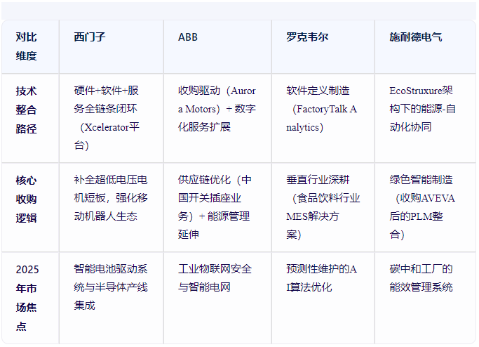 以ABB為例,其2024年收購(gòu)Sensorfact BV的能源管理SaaS平臺(tái),與西門子Safe Velocity安全解決方案形成直接競(jìng)爭(zhēng)。而羅克韋爾通過(guò)收購(gòu)MES廠商Plex Systems,構(gòu)建了覆蓋生產(chǎn)執(zhí)行到質(zhì)量管理的閉環(huán)系統(tǒng),與西門子Teamcenter PLM形成差異化。