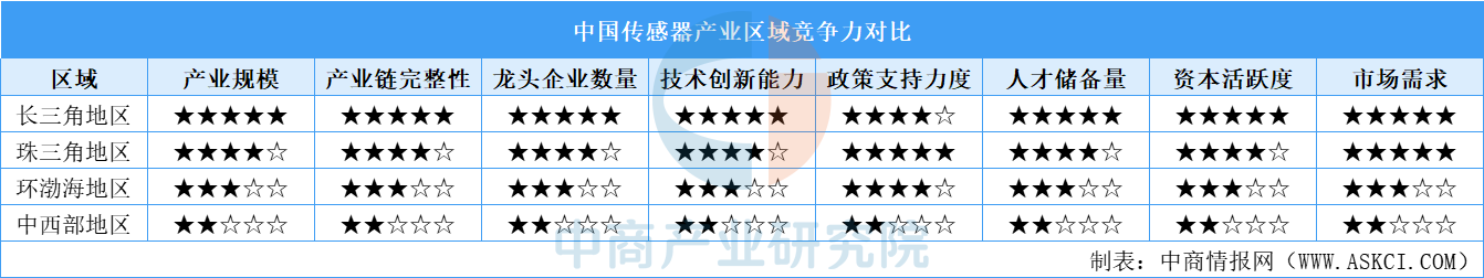傳感器區域競爭力對比