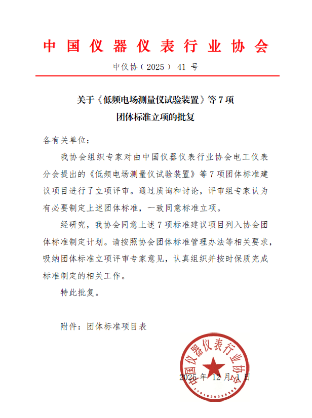 關于《低頻電場測量儀試驗裝置》等7項團體標準立項的
