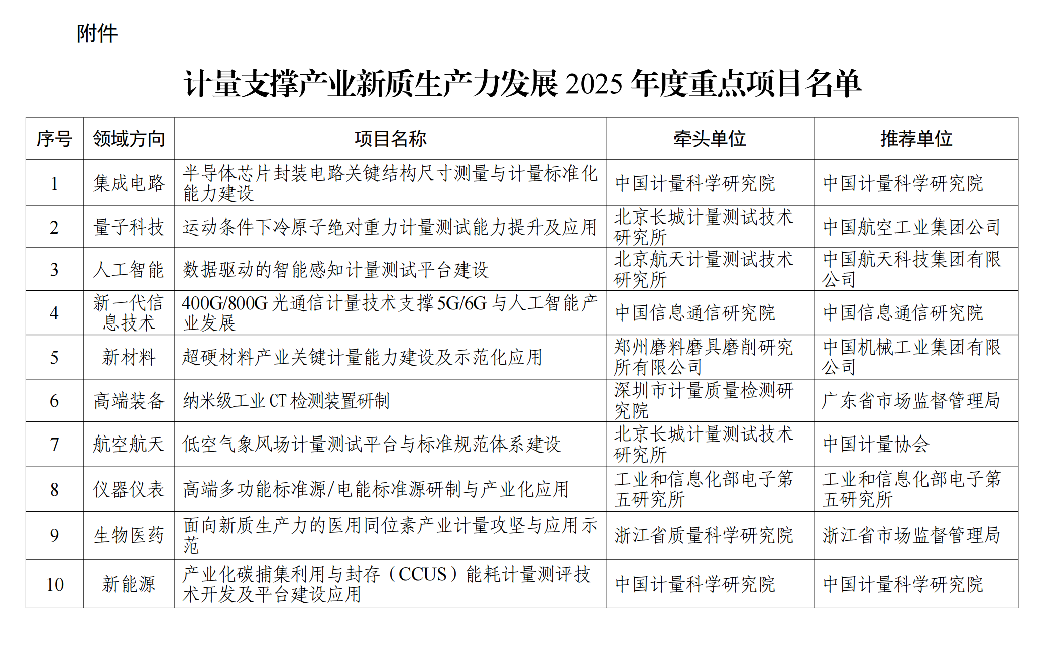 附件:計量支撐產業(yè)新質生產力發(fā)展2025年度重點項目名單