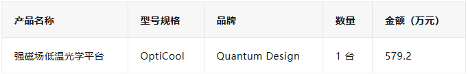 2、強(qiáng)磁場低溫光學(xué)平臺2025年11月26日強(qiáng)磁場低溫光學(xué)平臺采購項(xiàng)目通過驗(yàn)收,合同金額:579.2萬元。