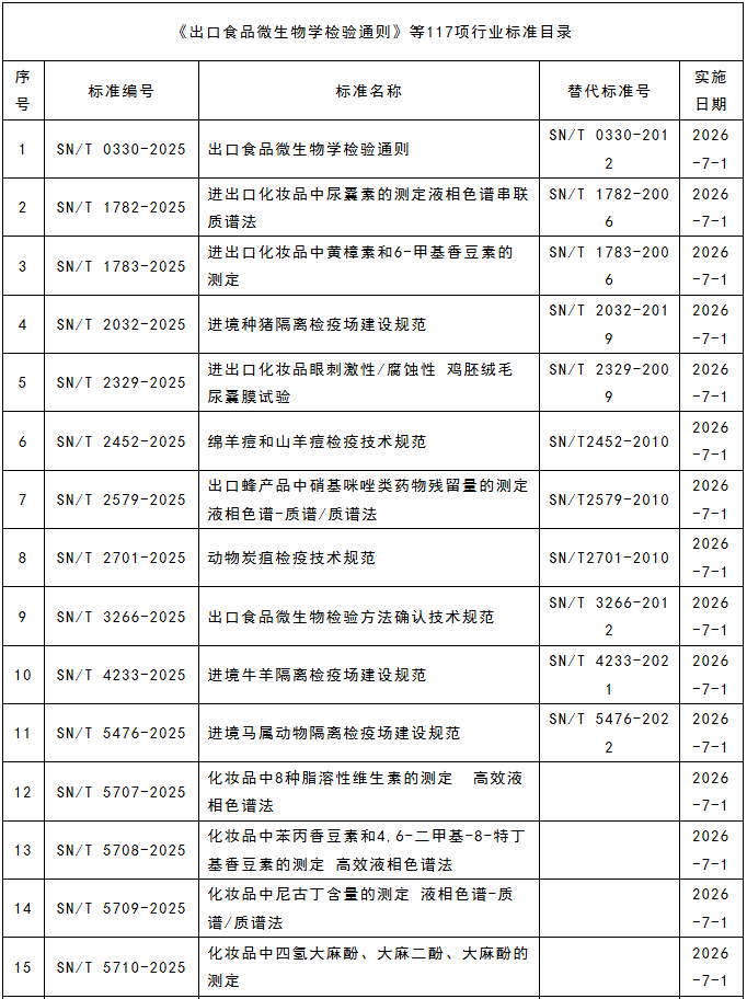 12月11日,海關總署發布《出口食品微生物學檢驗通則》等117項行業標準。這些新發布的行業標準旨在進一步規范出口食品的檢驗流程,確保出口食品的質量與安全,提升我國食品在國際市場上的競爭力。