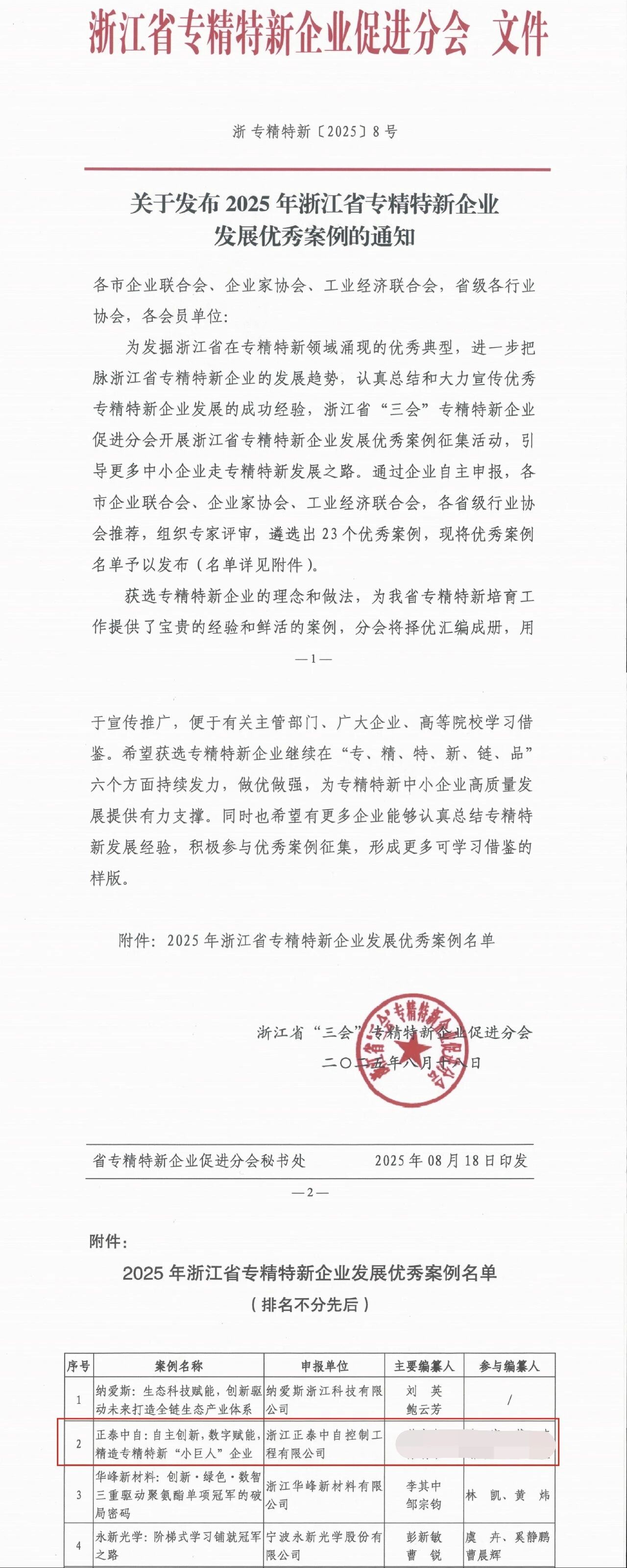 近日,浙江省“三會”專精特新企業(yè)促進(jìn)分會正式發(fā)布2025年度浙江省專精特新發(fā)展優(yōu)秀案例名單。正泰中自憑借《自主創(chuàng)新,數(shù)字賦能,精造專精特新“小巨人”企業(yè)》案例脫穎而出,成功入選該名單,發(fā)展路徑與創(chuàng)新實踐獲得官方認(rèn)可與推介。