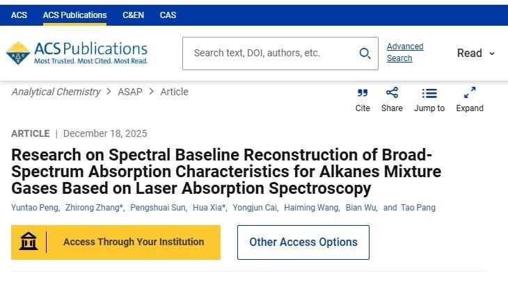 近日,中國科學院合肥物質科學研究院安徽光學精密機械研究所張志榮研究員團隊在寬譜吸收氣體基線重建技術研究方面取得重要進展。相關研究成果以《基于激光吸收光譜的烷烴混合氣體寬譜吸收特性基線重建研究》為題,發表在國際學術期刊《分析化學》(Analytical Chemistry)上。