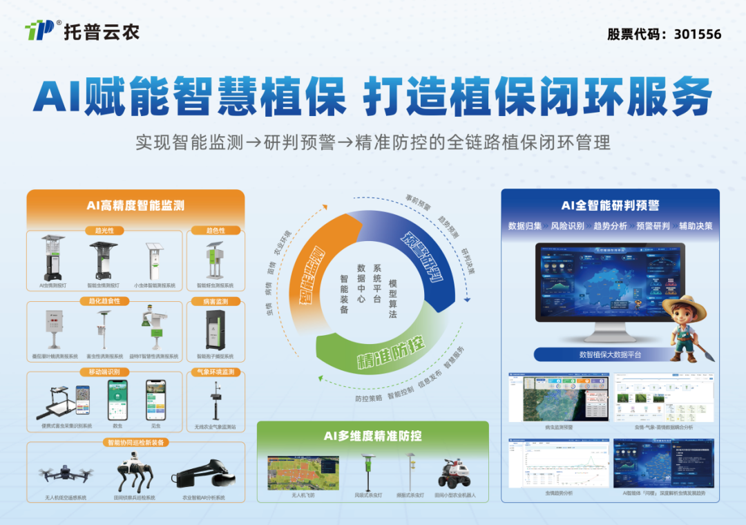 此次項目的技術(shù)落地,是托普云農(nóng)在智慧農(nóng)業(yè)領(lǐng)域長期深耕的集中體現(xiàn)。通過持續(xù)深化人工智能、大數(shù)據(jù)等數(shù)智技術(shù)在植保領(lǐng)域的融合應(yīng)用,托普云農(nóng)成功打通智能監(jiān)測→研判預(yù)警→精準(zhǔn)防控的數(shù)智植保全鏈路完整閉環(huán),構(gòu)建起現(xiàn)代化植保防控體系,推動植保行業(yè)向智能化、自動化、綠色化方向邁進(jìn)。