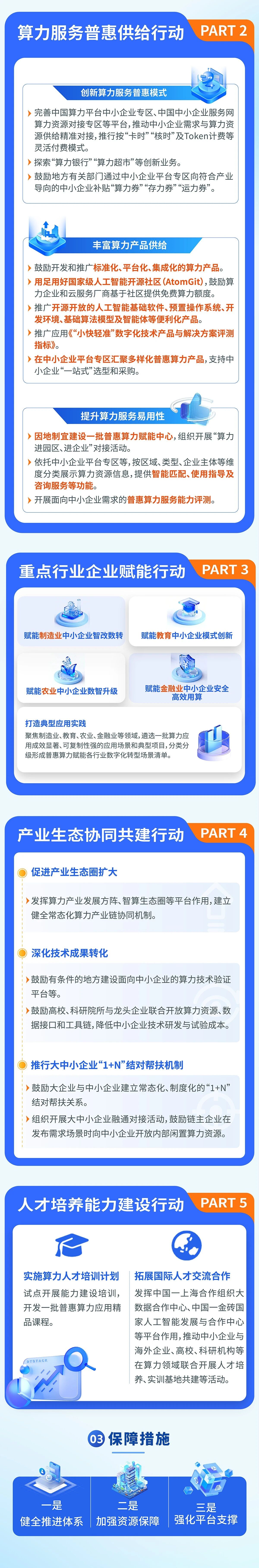 10.賦能金融中小企業安全高效用算。面向金融科技、供應鏈金融、小微金融服務等領域的中小企業,推動普惠算力與金融業務深度融合,支持其在風險控制、智能顧投、信用評估、監管合規等場景中安全、高效應用算力。針對金融業數據安全合規要求高、核心數據出網難等需求,在保障數據不出域前提下,支持有條件的企業開展本地化算力部署。