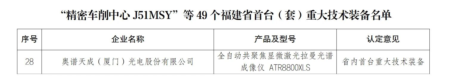近日,奧譜天成自主研發的ATR8800XLS全自動共聚焦顯微激光拉曼光譜成像儀成功入選“福建省首臺(套)重大技術裝備”。企業在高端分析儀器領域的技術創新與成果轉化能力再獲省級權威認可。