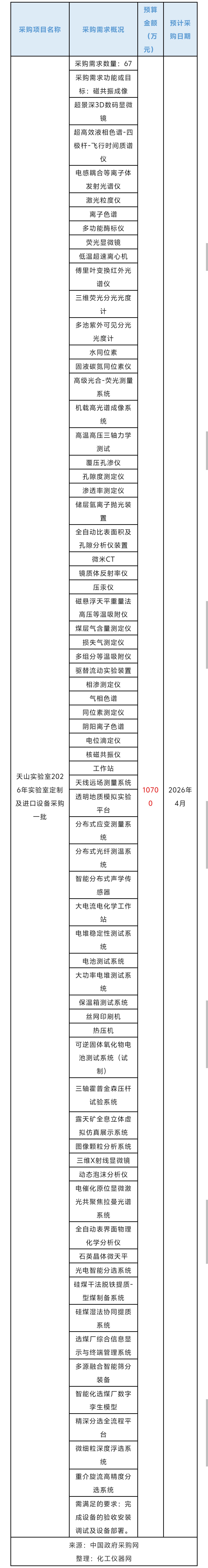 天山實驗室設備采購意向匯總
