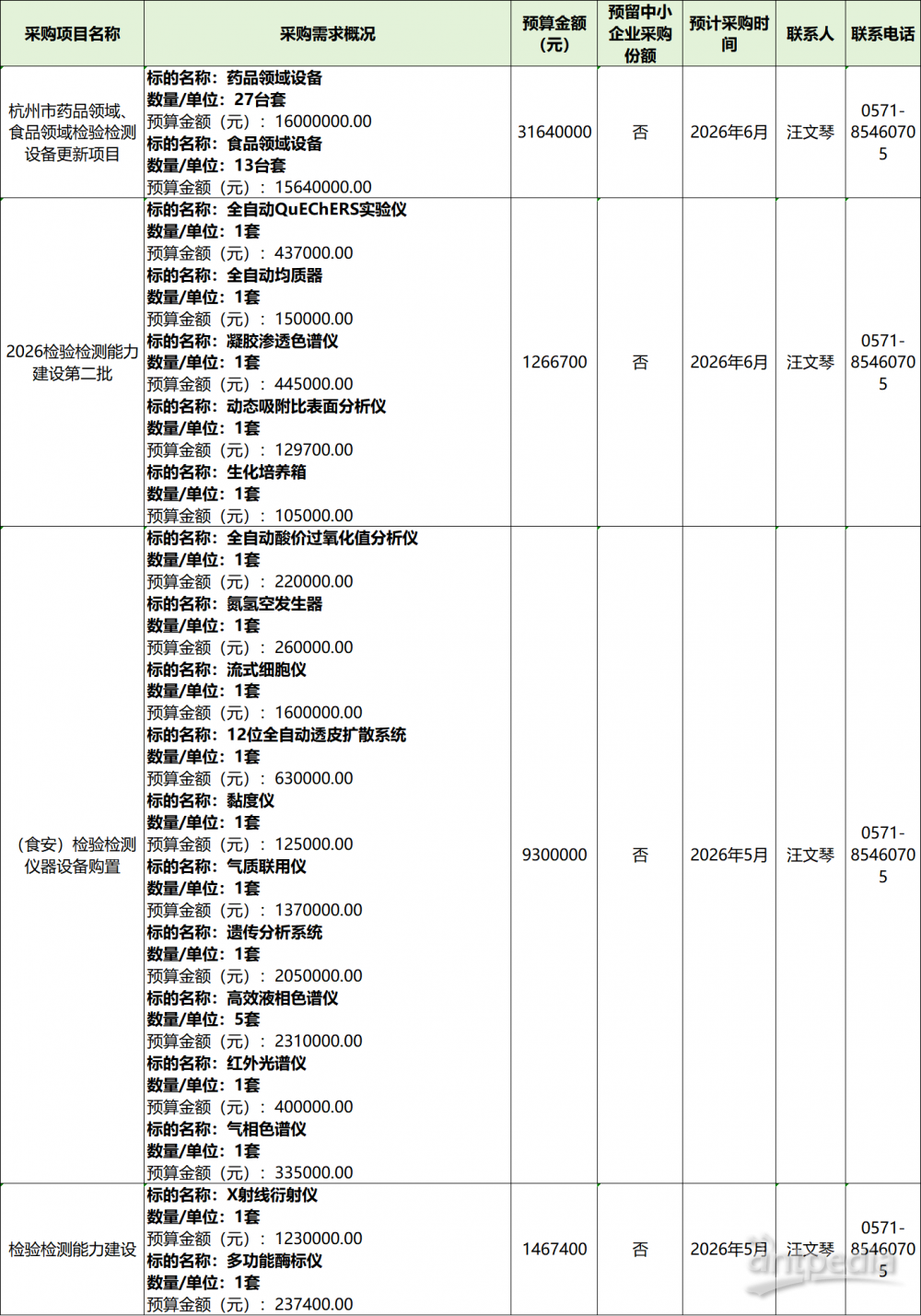 4367.41萬元擬采購61套儀器設備,杭州食藥檢